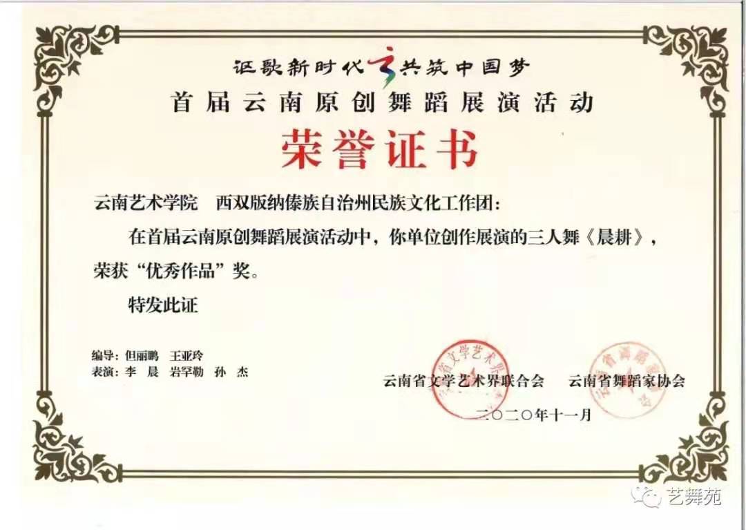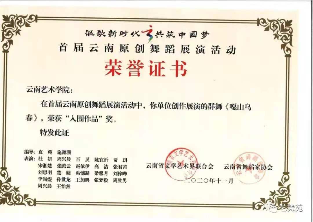 最终,经评委公开、公平、公正的阳光评审及综合考量,公司选送的:佤族群舞《佤山薪火》获最佳作品奖 ;彝族群舞《幸福的脚步》、傣族三人舞《晨耕》获优秀作品奖;景颇族独舞《景颇祭》、傣族独舞《莲漪》、藏族群舞《嘎山乌春》获原创作品奖,2026世界杯指定网站获优秀组织奖。