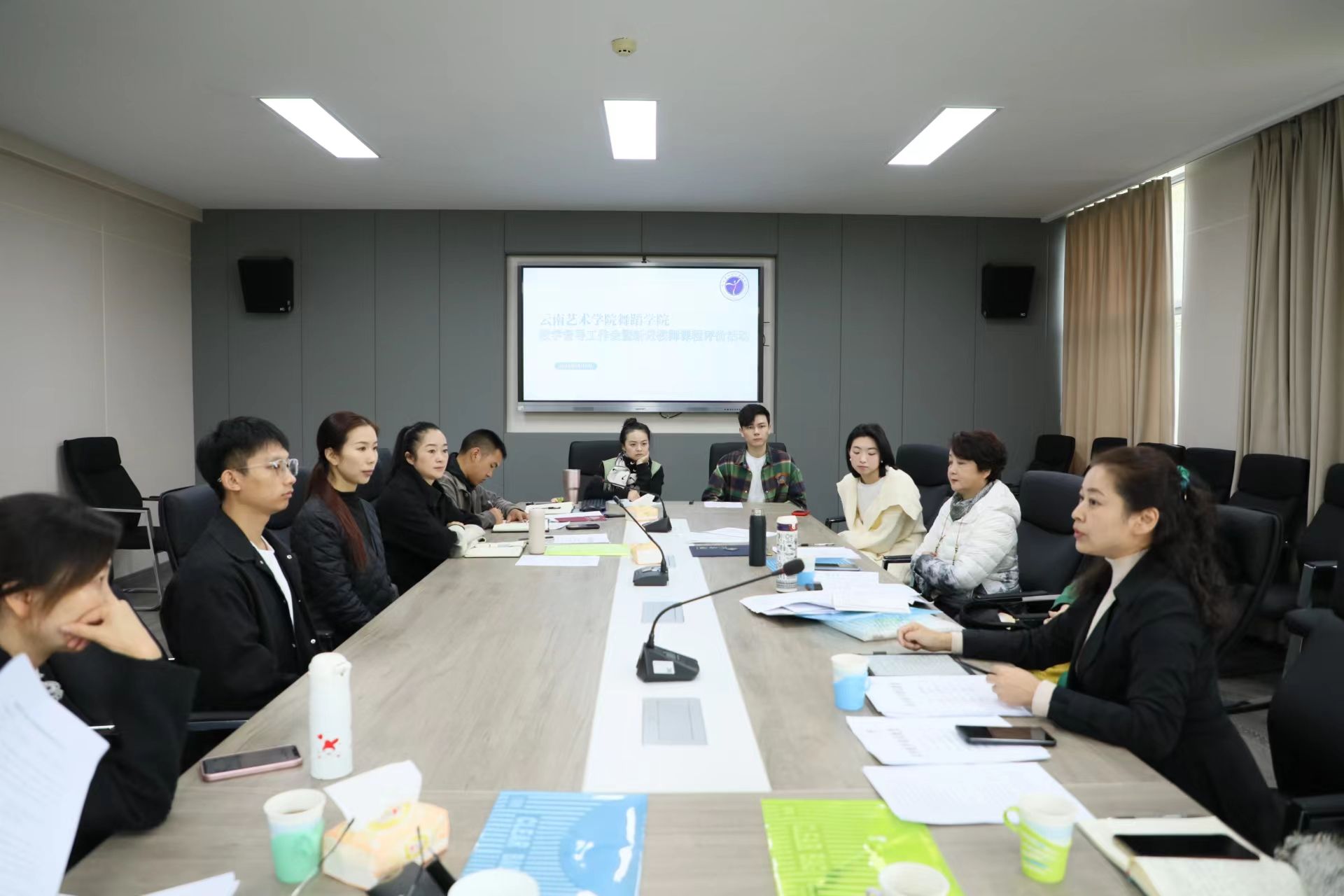会议第二个环节,由五位校内外教学督导对吕文博、何楚千、罗嘉孟、成杰、方茹等五名新进教师开展以现场说课和点评为主要形式的课程评价。