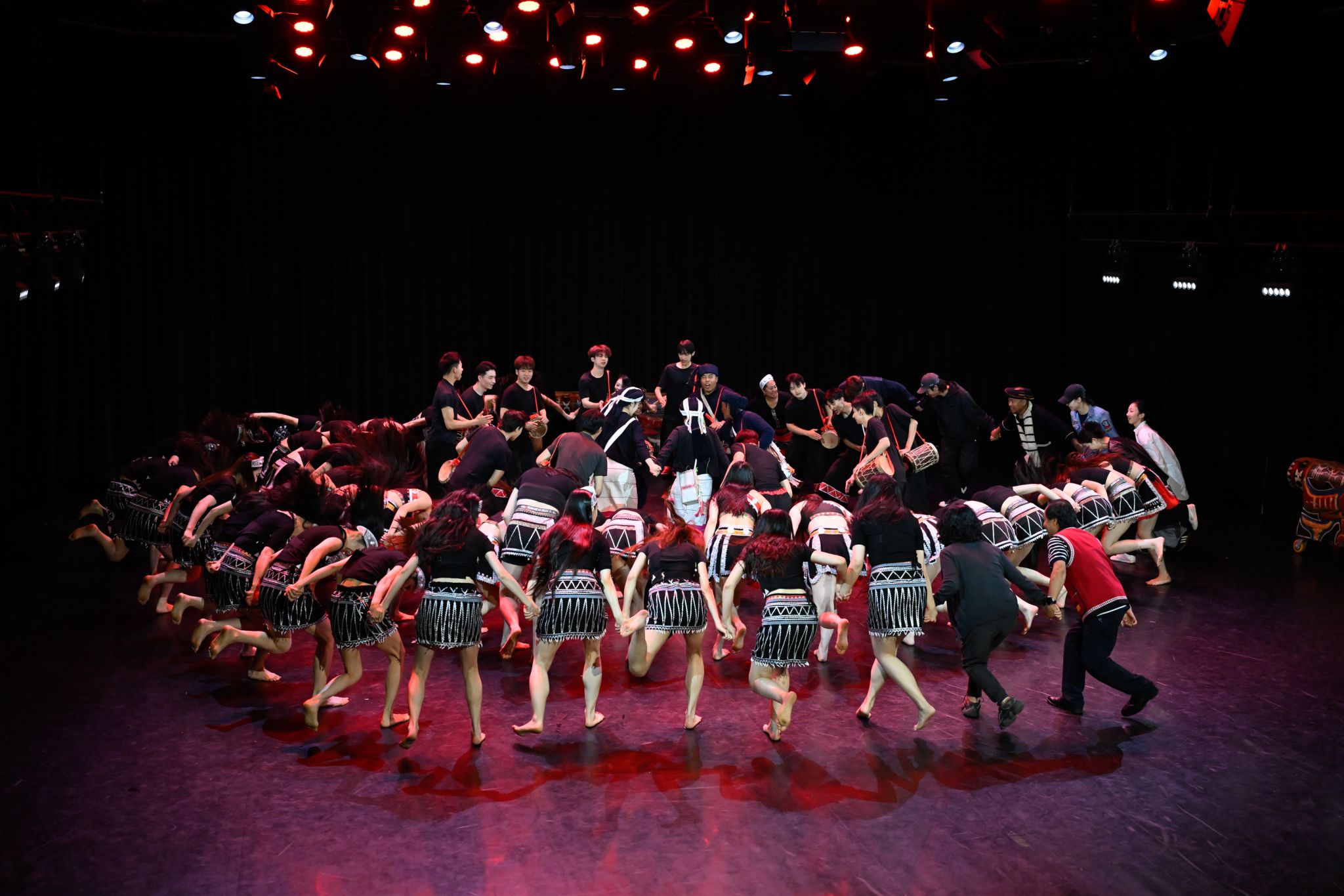 为期五天的学习,非遗专家讲解了佤族文化,传承人亲授传统歌舞与木鼓、铓锣技艺。员工们通过“具身认知”佤族传统“歌、舞、乐”之韵律美,领悟其“万物有灵”的哲学内涵与原始艺术张力,为今后从事民族舞蹈表演、教学、创作及理论研究奠定坚实的基础。