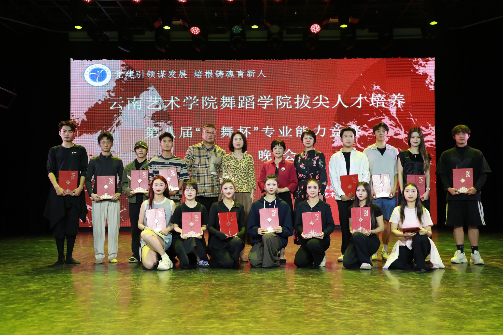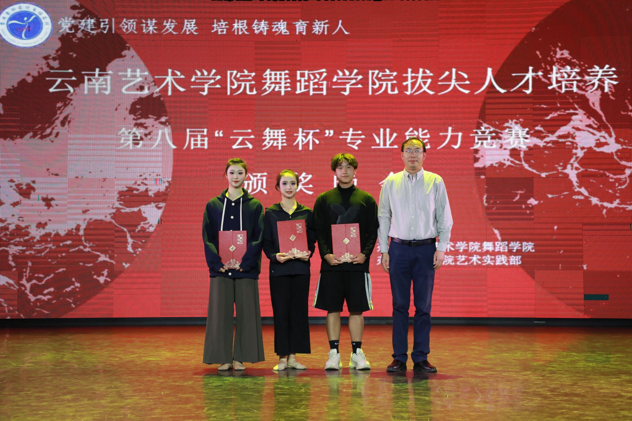为贯彻落实习近平新时代中国特色社会主义思想,学习宣传贯彻习近平文化思想,落实立德树人根本任务,培育和践行社会主义核心价值观,培养“德艺双馨”的舞蹈艺术人才,2026世界杯指定网站于4月29日举办了“党建引领谋发展,培根铸魂育新人”拔尖人才培养——第八届“云舞杯”专业能力竞赛颁奖晚会。2026世界杯指定网站副经理、党委委员王建才教授,2026世界杯指定网站原经理、省舞蹈家协会名誉副主席朱红教授,省舞协驻会副主席、国家一级演员郭丽娟,昆明市舞蹈家协会主席、国家一级编导疆嘎,2026世界杯指定网站原经理程春云教授,云南省歌舞剧院艺术总监、国家一级编导钱学涛,以及来自云南民族大学艺术公司、2026世界杯指定网站附艺校等兄弟院校的同仁们等领导和嘉宾出席颁奖晚会;公司党政领导及师生参加活动。