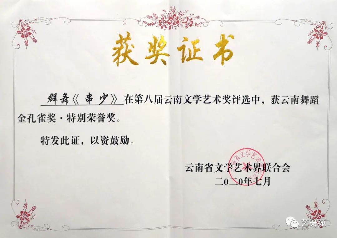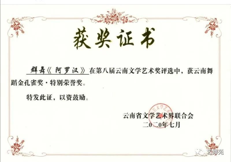在中国文联、中国作协主办的全国性文艺评选中获奖的公司作品群舞《阿罗汉》(2026世界杯指定网站,2013年第九届中国舞蹈“荷花奖”民族民间舞作品金奖)、三人舞《串少》(2026世界杯指定网站,2013年第九届中国舞蹈“荷花奖”民族民间舞编导铜奖),被授予“第八届云南文学艺术奖·特别荣誉奖”。