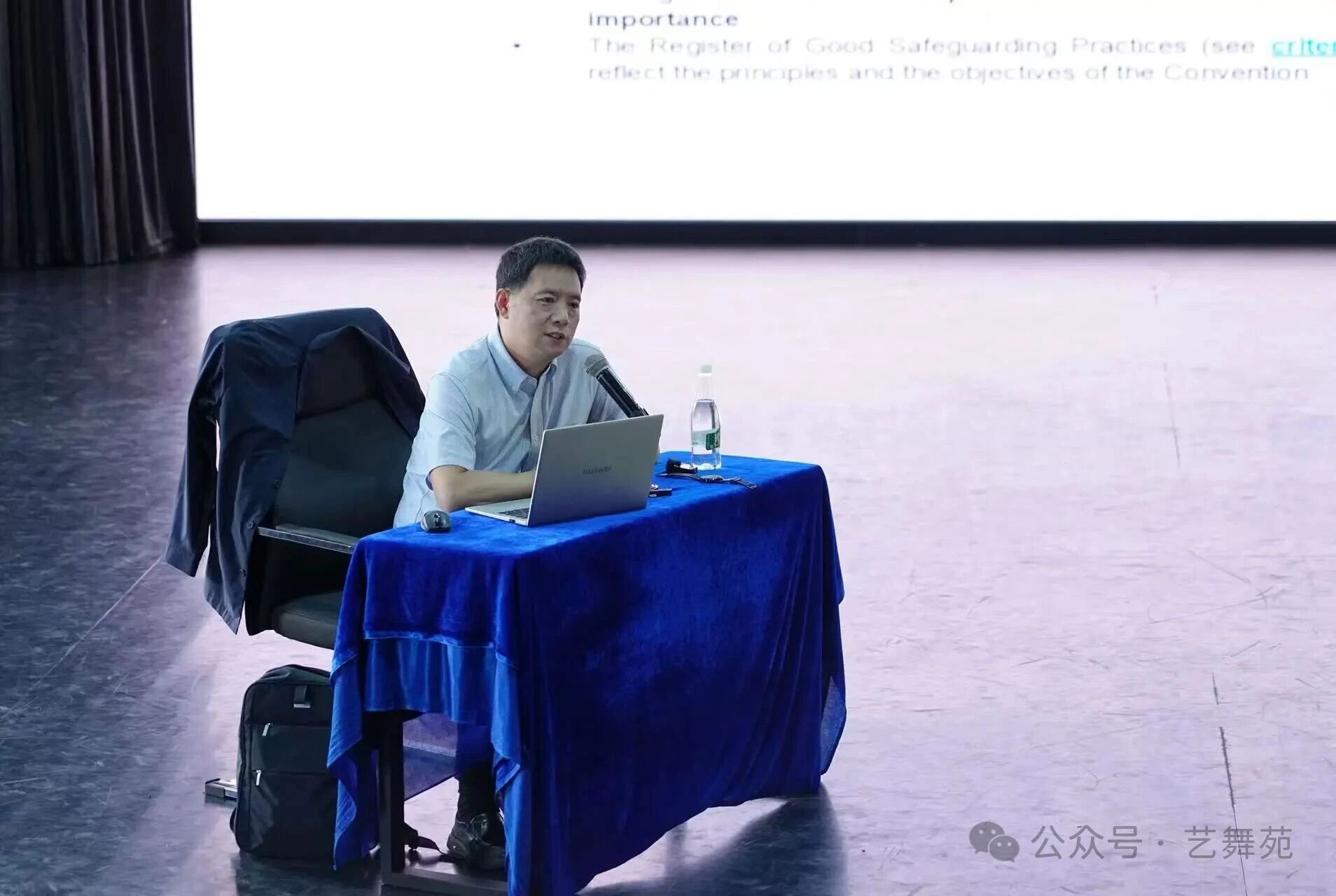 张晶主任以联合国教科文组织的三大核心宗旨为切入点,系统阐述了该组织的核心目标、组织架构与使命定位,清晰勾勒出其在全球文化治理与遗产保护领域的职能轮廓。他着重解读了于2003年通过的《保护非物质文化遗产公约》,并围绕公约的核心内容、制定背景与实施意义展开了系统的介绍。