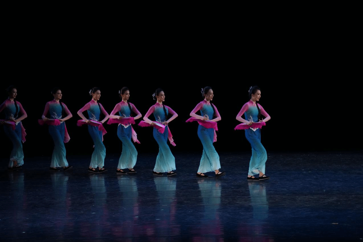 公司师生将云南汉族民间舞蹈云南花灯带入课程展示舞台,不仅为现场观众展现了云南汉族特有的风土人情,还生动呈现了他们的生活环境、情感交流方式以及审美精神追求。