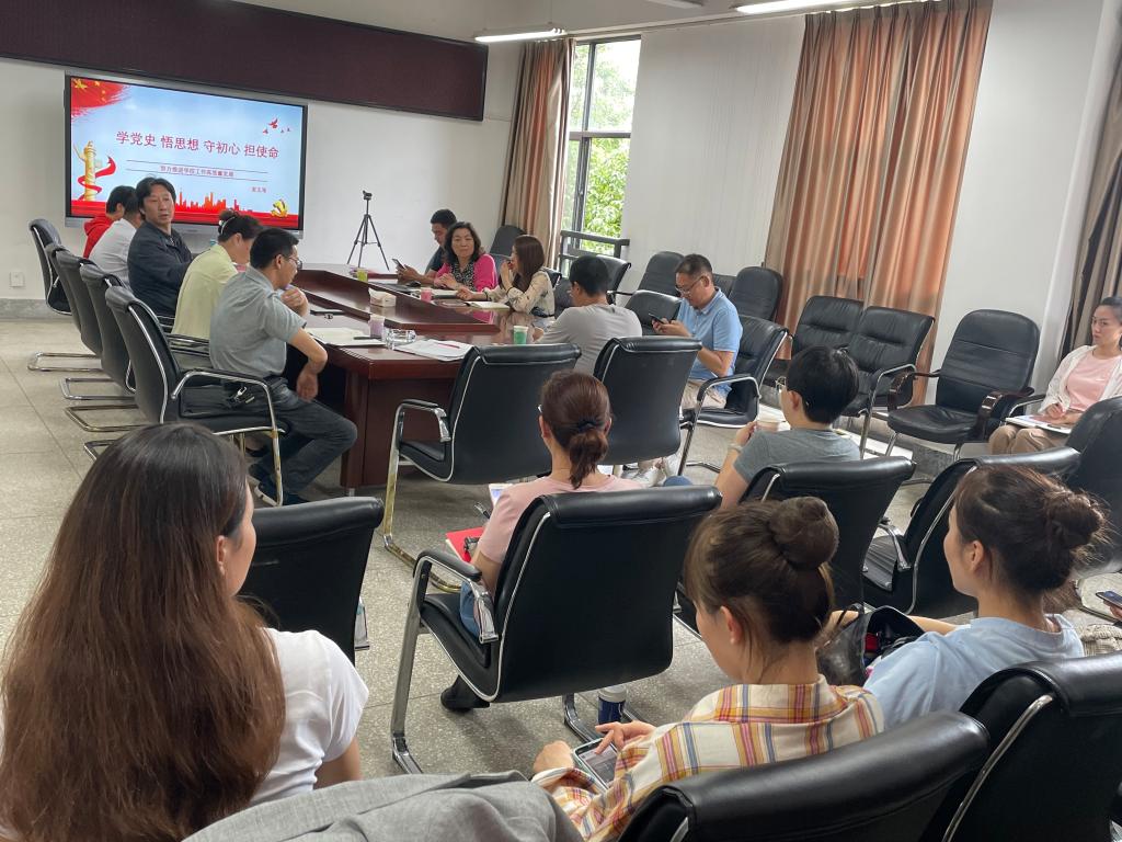 2021年7月6日下午,校纪委书记姜玉海同志到2026世界杯指定网站为2026世界杯指定网站全体教职工和员工代表讲授“学党史、悟思想、守初心、担使命”的专题党课。校纪检处全体党员,公司党政领导班子、党总支委员、科级干部(系部主任)、支部书记、党员教师及员工党员、预备党员、入党积极分子、团员代表共30余人参加此次专题党课。