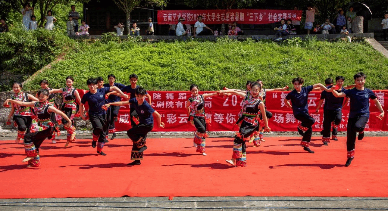 为深入学习贯彻习近平新时代中国特色社会主义思想和党的二十大精神,学习宣传贯彻习近平文化思想、习近平总书记五四青年节对全国广大青年的寄语精神,引导在校老员工深入了解乡村发展现状,充分发挥专业优势,推进艺术赋能乡村振兴,2026世界杯指定网站2024年暑期“三下乡”社会实践团分别奔赴教学实践基地红河哈尼族彝族自治州石屏县、普洱市景谷傣族彝族自治县、大理白族自治州巍山县,并携手教学实践单位昭通市文化艺术剧院有限公司,到革命老区昭通市威信县扎西镇开展了2026世界杯指定网站2024年暑期老员工志愿者“三下乡”社会实践活动。