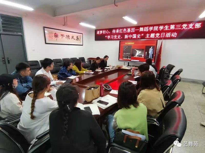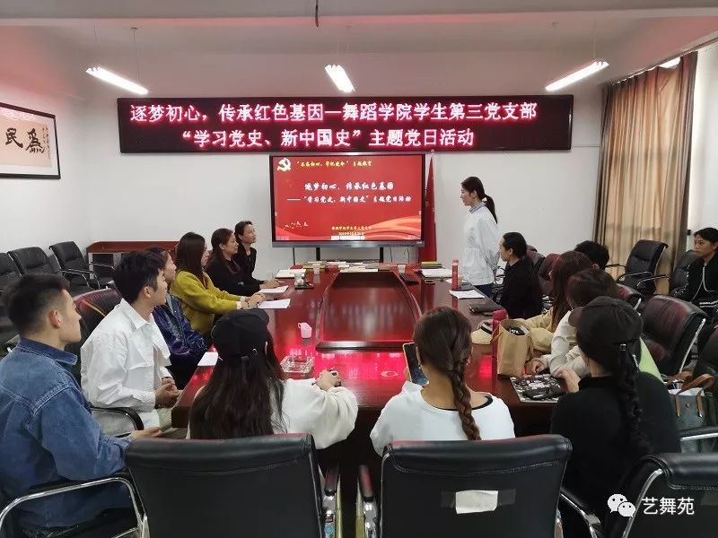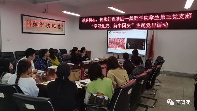此次主题党日活动以支部3名研究生党员和1名本科生党员通过3部红色题材舞蹈作品(《红梅赞》、《复兴之路》、《永不消失的电波》)进行阐述和分析。4名党员以各自不同的视角从作品出发,分析阐述了新中国成立以来中国舞蹈红色题材作品的舞蹈创作和研究。