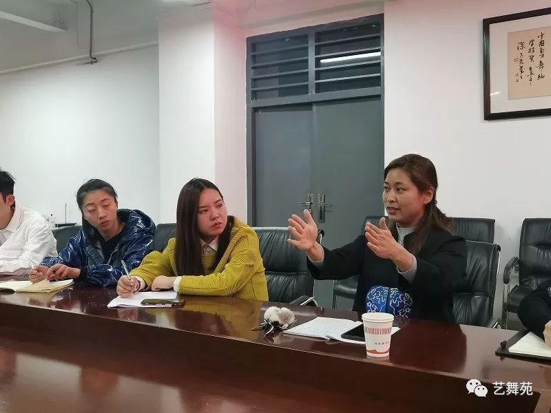 刘丽副经理在活动中对4名支部党员以中国舞蹈创作史为基点,结合2014年文艺座谈会精神和习总书记在2019年3月全国两会上的讲话,鼓励在场的支部党员同学:要将“守正初心、培根铸魂”牢记心间,要思考、探索在寻找中华民族传统根脉的基础上,如何将自己的文艺创作和作品触及灵魂。她给同学们提了3个学习建议:1、要有高度的文化自信和新时代青年的担当使命意识;2、要有敏锐的题材视角;3、要有独到的艺术手法。并强调,文艺是时代的号角,是最能代表一个时代的风貌,也最能引领一个时代的风气,对于我们新时代文艺工作者来说,我们的专业创作更应该站在时代的浪尖上,要有精神高度和文化内涵的优秀作品反映现实生活,弘扬民族传统文化,体现我们云艺舞院在民族舞蹈编导人才上的培养特色。