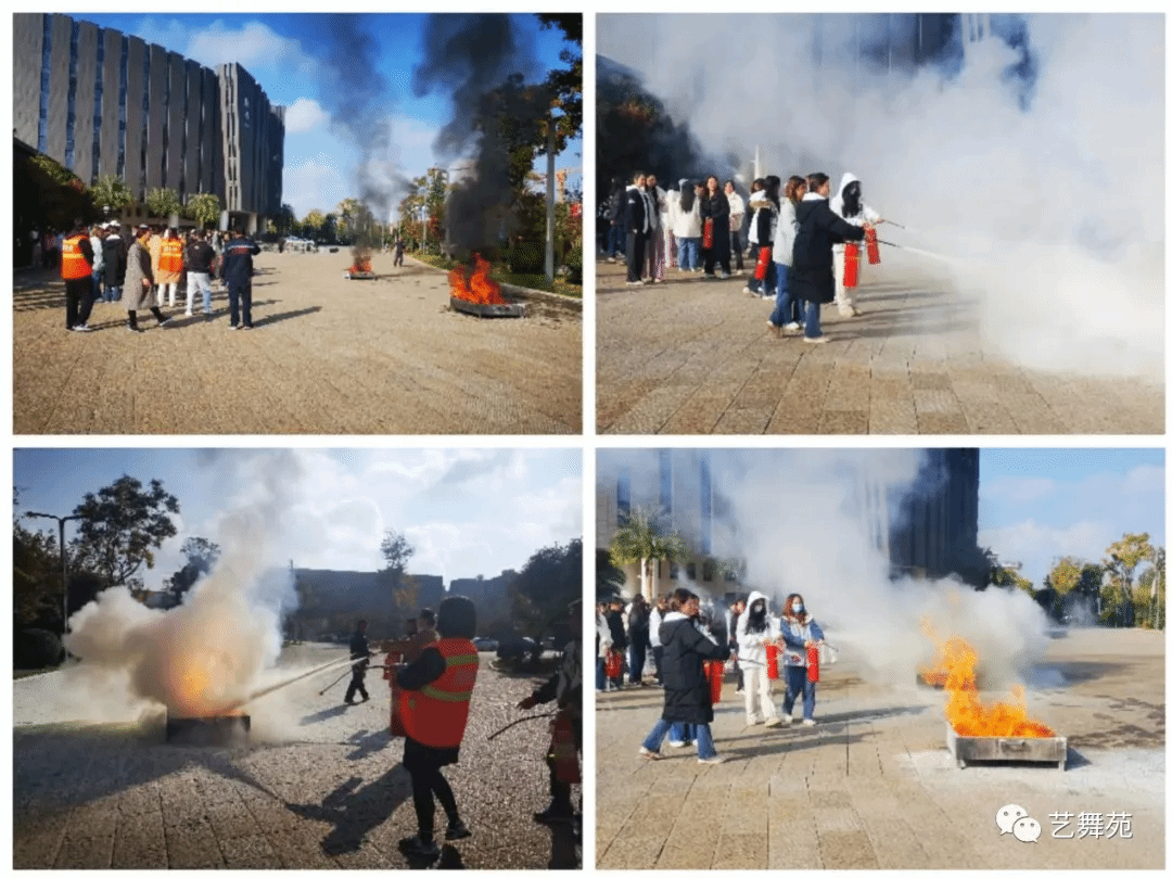 上午10:30,在图书馆广场进行消防疏散演练总结和重点注意事项讲解和消防器材使用实操训练。