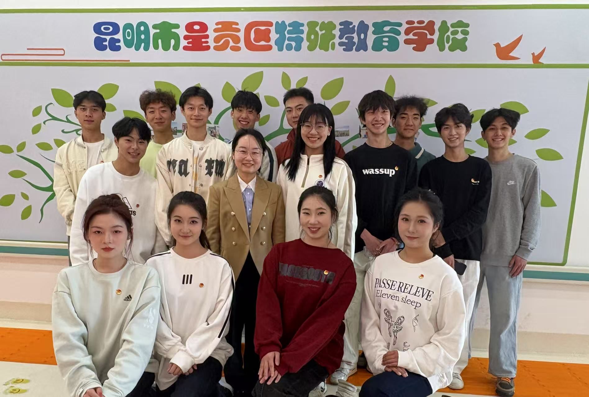 与云南特殊教育职业公司联合开展实践服务活动。员工们发挥专业特长,通过舞蹈教学、美育讲堂等方式,为云南特殊教育职业公司的员工带去欢乐与关怀,不仅展现了艺术教育的温度,也让同学们在服务中深刻体会到“助人者自助,乐人者乐己”的真谛。